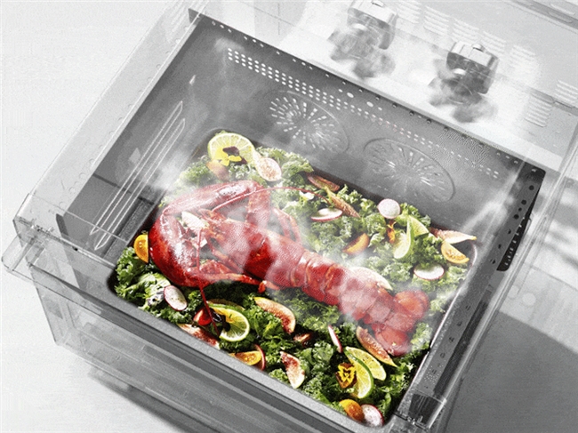 除了烘烤与内胆,宜盾普在蒸汽系统上也体现了专业考量。其极速鲜蒸技术依托2000W以上大功率与背部多孔直喷系统,能实现十数秒内快速产出大量均匀蒸汽,确保食物迅速锁鲜、熟透且不夹生,甚至可支持“双层同蒸”。
