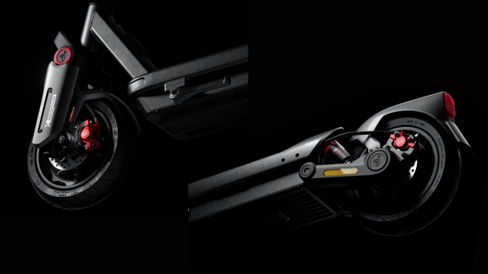 产品采用前后双液压结构,配合11英寸自密封轮胎,可过滤日常路面颠簸。自密封轮胎在遭遇穿刺时可自动修补,减少扎胎后无法骑行的风险。车架主体为铝合金材质,整机重量24.6kg,最大载重130kg。折叠后尺寸为1218mm×590mm×592mm,可放入汽车后备箱或靠墙收纳。